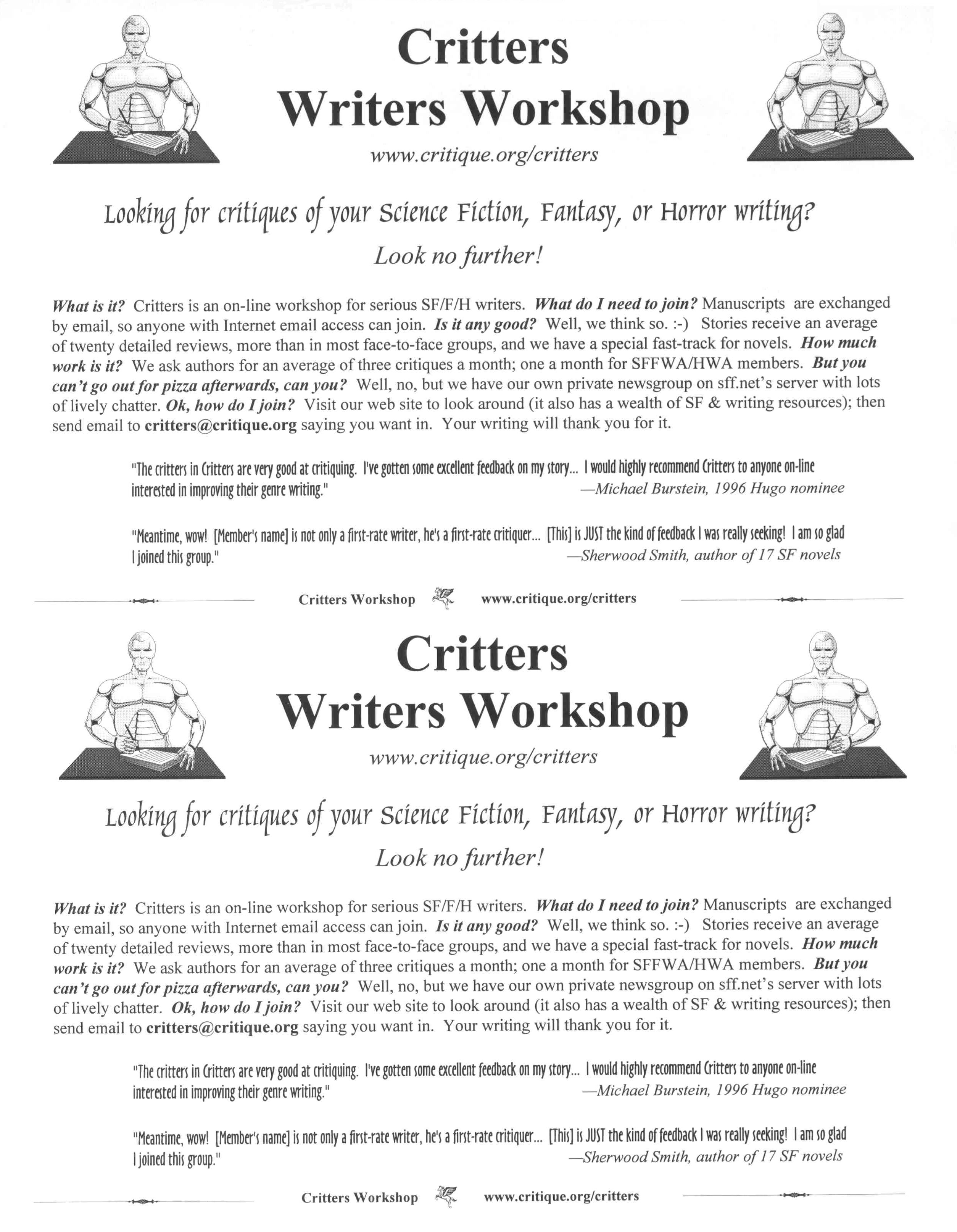 If you want to make a career of SF writing, STAYING ALIVE - A WRITER'S GUIDE by three-time SFWA President Norman Spinrad, published by your Critter Captain's ReAnimus Press, is an indispensable guide to the inside workings of the SF publishing industry by an expert.